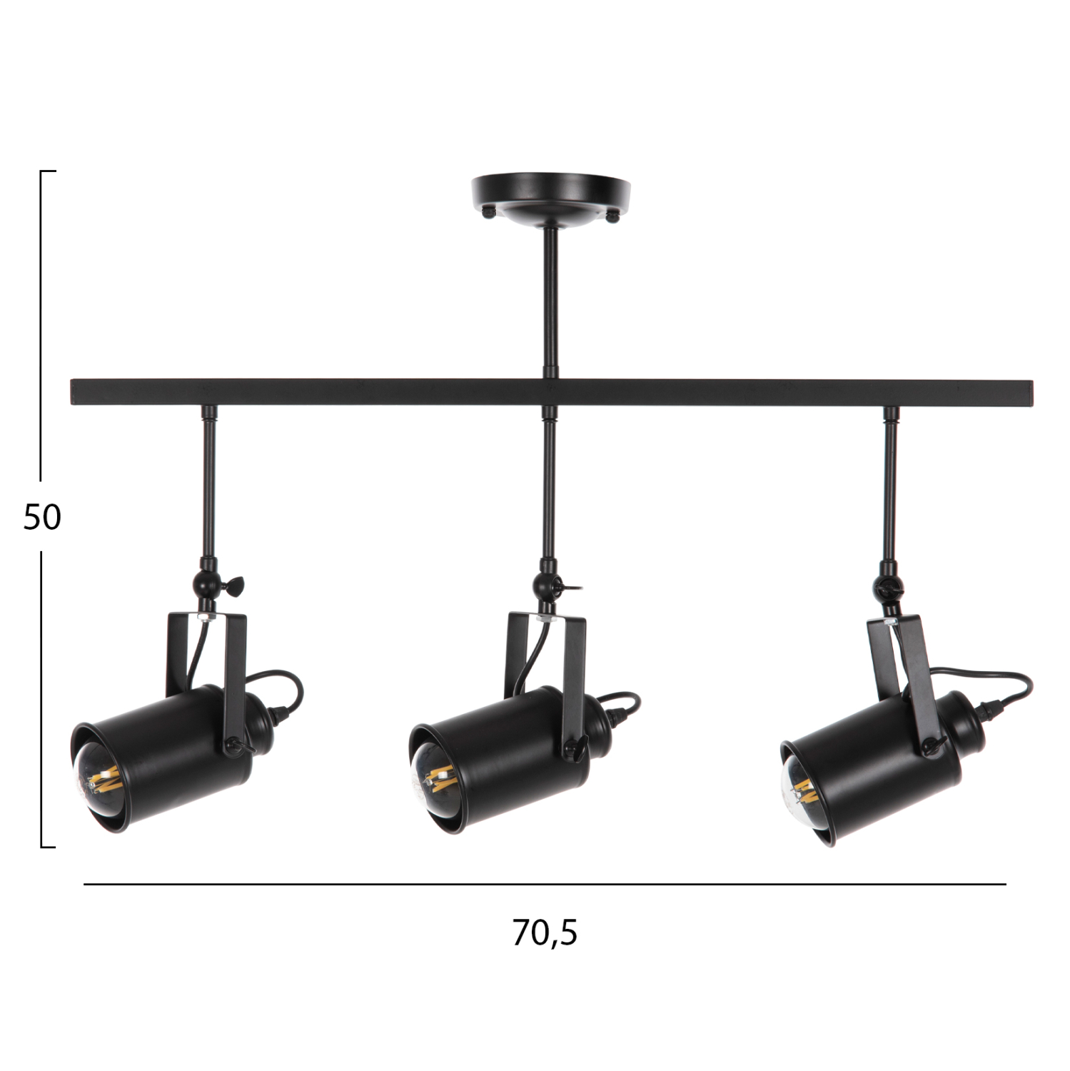 Το ΗΜ4124 είναι μια ακόμα όμορφη προσθήκη στην γκάμα μας. Πρόκειται για 3 προβολάκια με μεταλλικό σκελετό σε ΜΑΥΡΟ χρώμα που είναι μονταρισμένα σε σειρά σε μια σταθερή μεταλλική μπάρα που κρέμεται από την βάση της οροφής. Ένα φωτιστικό που μπορεί να δώσει εστιασμένο φως από 3 διαφορετικά σημεία και μάλιστα υπάρχει η δυνατότητα περιστροφής του κάθε προβολέα ξεχωριστά για ακόμα πιο εστιασμένο φωτισμό.