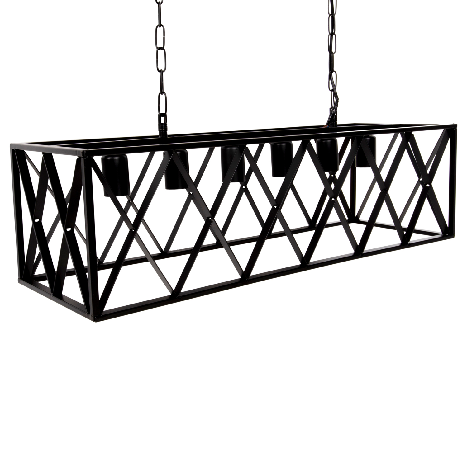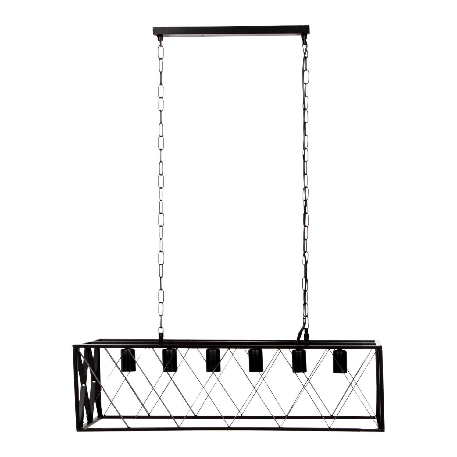 HΜ4128—Ανακαλύψτε τα νέα φωτιστικά στην γκάμα μας και ολοκληρώστε την διακόσμησή σας. Πρόκειται για ένα φωτιστικό με 6 λάμπες που κρέμεται με αλυσίδες από την βάση της οροφής. Το ορθογώνιο μεταλλικό καπέλο σε ΜΑΥΡΟ χρώμα δεν εμποδίζει καθόλου το φως να φτάσει σε κάθε γωνιά, και είναι η επιτομή του μοντέρνου design στα φωτιστικά οροφής.