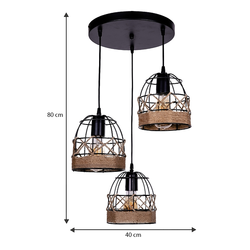 Φωτιστικό οροφής Lino Megapap E27 μεταλλικό – σχοινί τρίφωτο χρώμα μαύρο 40x40x80εκ.