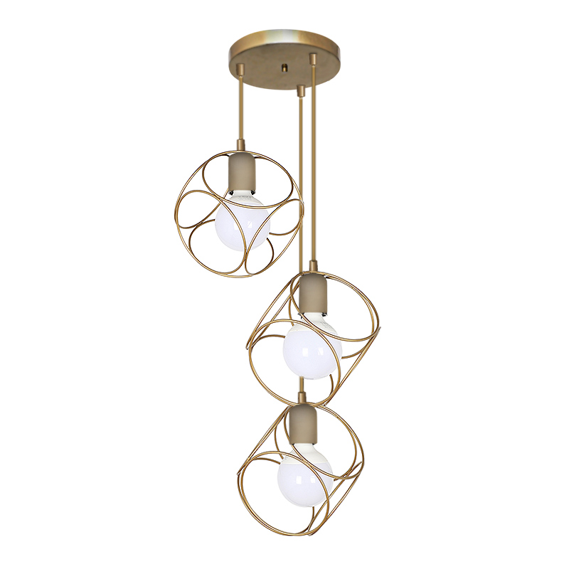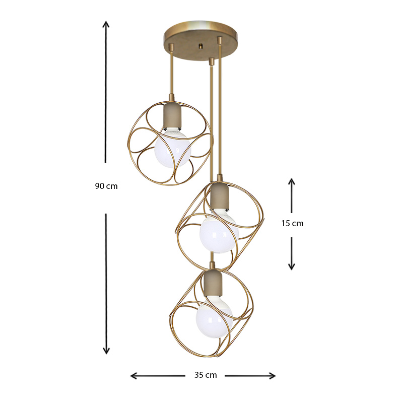 Φωτιστικό οροφής Lusita Megapap E27 μεταλλικό τρίφωτο χρώμα χρυσό 35x35x90εκ.