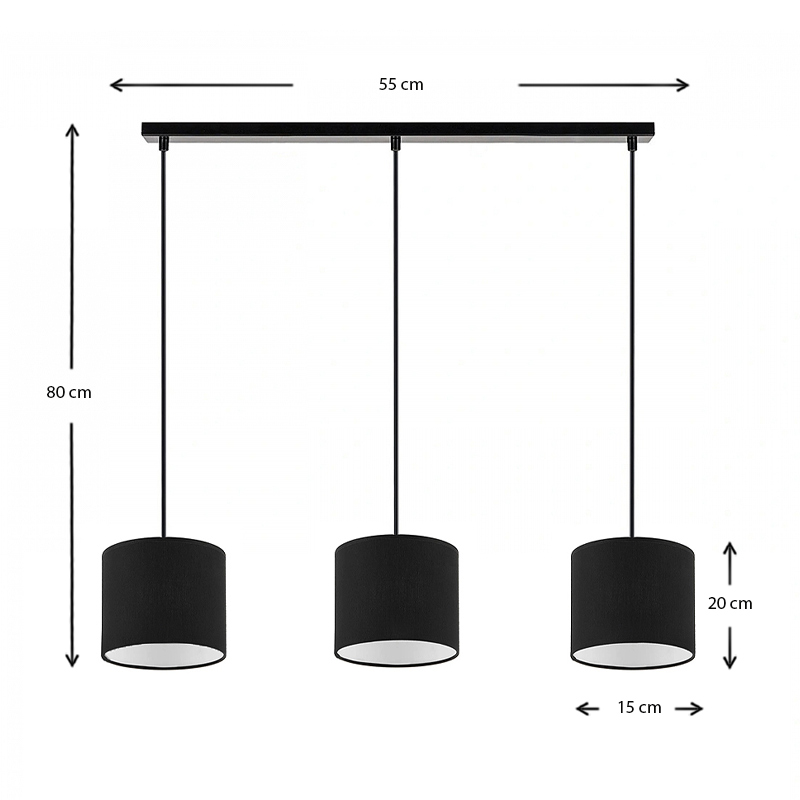 Φωτιστικό οροφής Morris Megapap E27 υφασμάτινο τρίφωτο χρώμα μαύρο 55x15x70εκ.