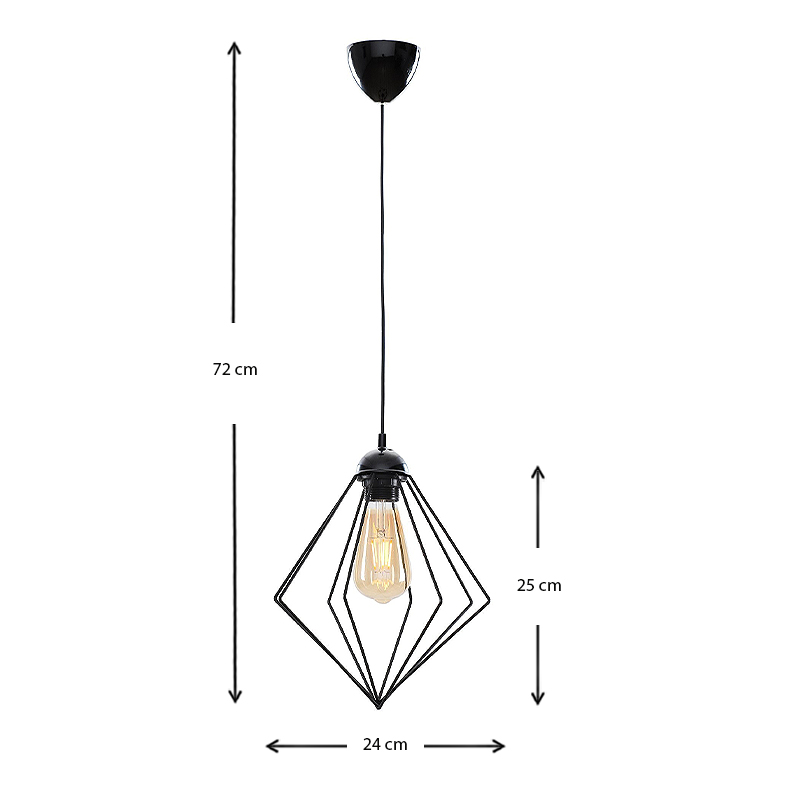 Φωτιστικό οροφής Nura Megapap E27 μεταλλικό μονόφωτο χρώμα μαύρο 24x24x72εκ.