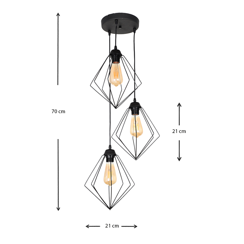Φωτιστικό οροφής Nura Megapap E27 μεταλλικό τρίφωτο χρώμα μαύρο 21x21x70εκ.