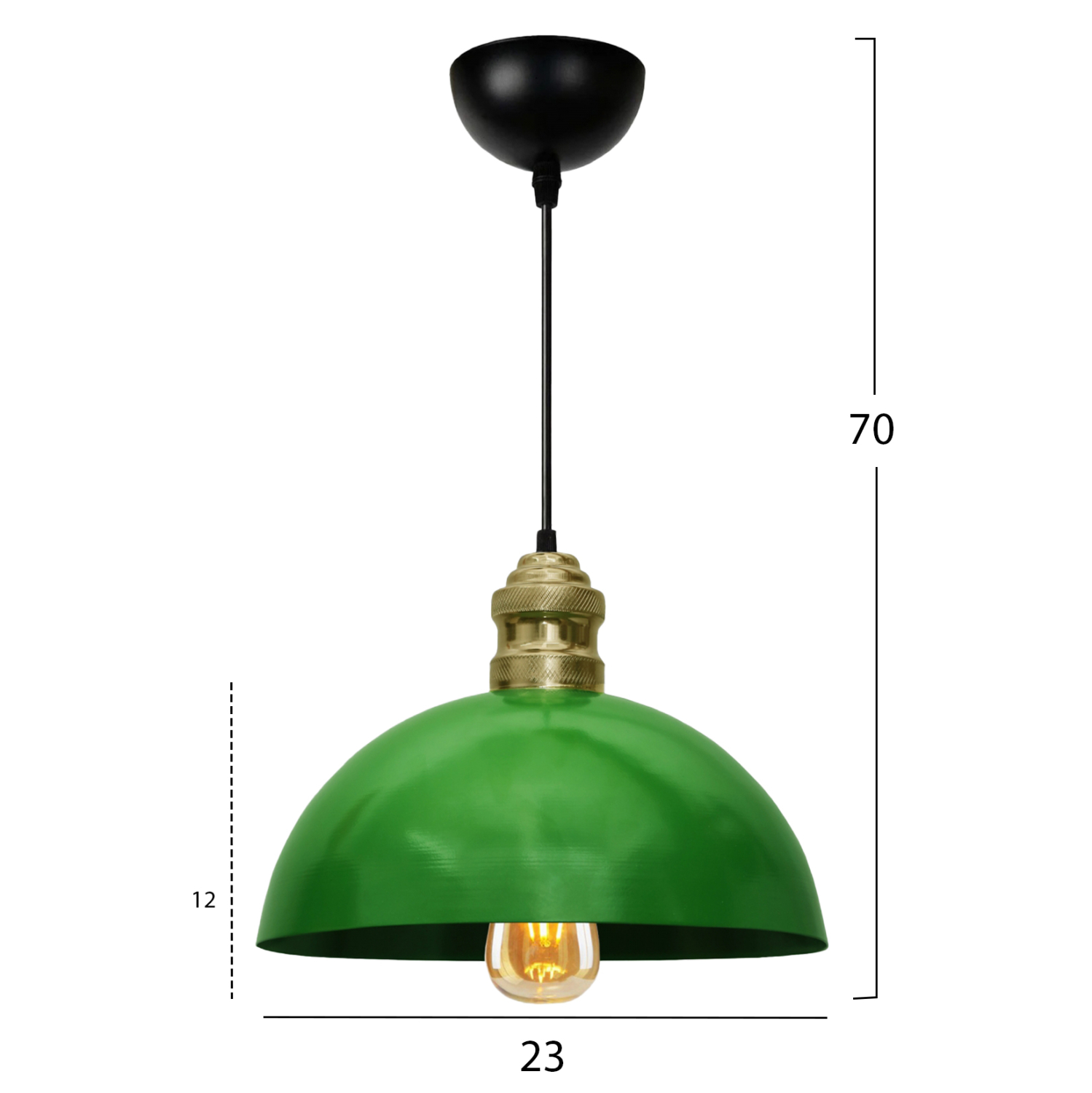 Πρόκειται για ένα όμορφο φωτιστικό σε κλασική γραμμή αλλά με μοντέρνα αισθητική και εμφάνιση. Το πράσινο χρώμα του φωτιστικού αιχμαλωτίζει τα βλέμματα, αλλά ταυτόχρονα απαιτεί και ιδιαίτερη διακοσμητική συνοχή για να αναδείξει πλήρως τις αισθητικές αρετές του. Το «καπέλο» σε σχήμα μανιτάρι δίνει μια επικεντρωμένη δέσμη φωτός, καθιστώντας το φωτιστικό ιδανικό για τραπεζαρίες ή μπαρ, είτε στο σπίτι σας είτε στον αντίστοιχο επαγγελματικό σας χώρο.