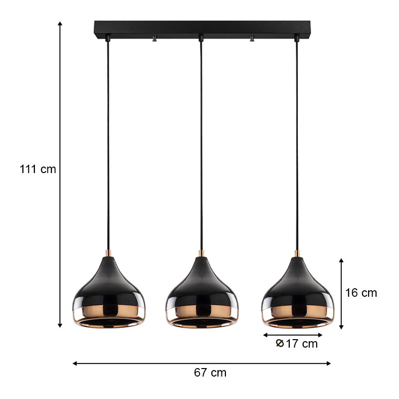 Φωτιστικό οροφής Precious Megapap E27 μεταλλικό τρίφωτο χρώμα μαύρο – bronze 67x17x111εκ.