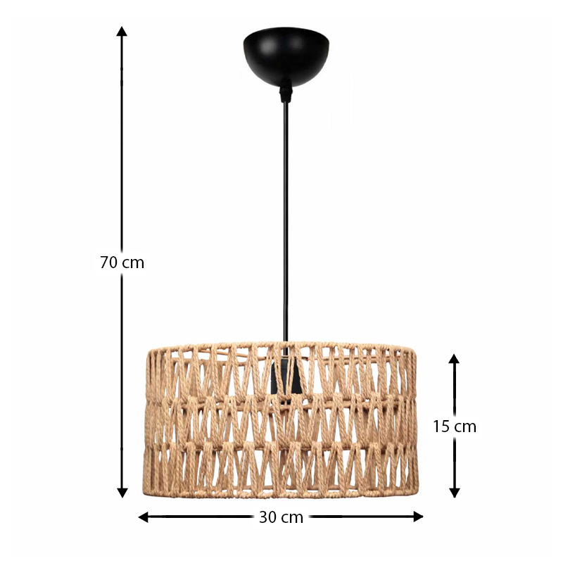 Φωτιστικό οροφής Sarkiz Megapap E27 από σχοινί μονόφωτο χρώμα φυσικό Ø30×70εκ.