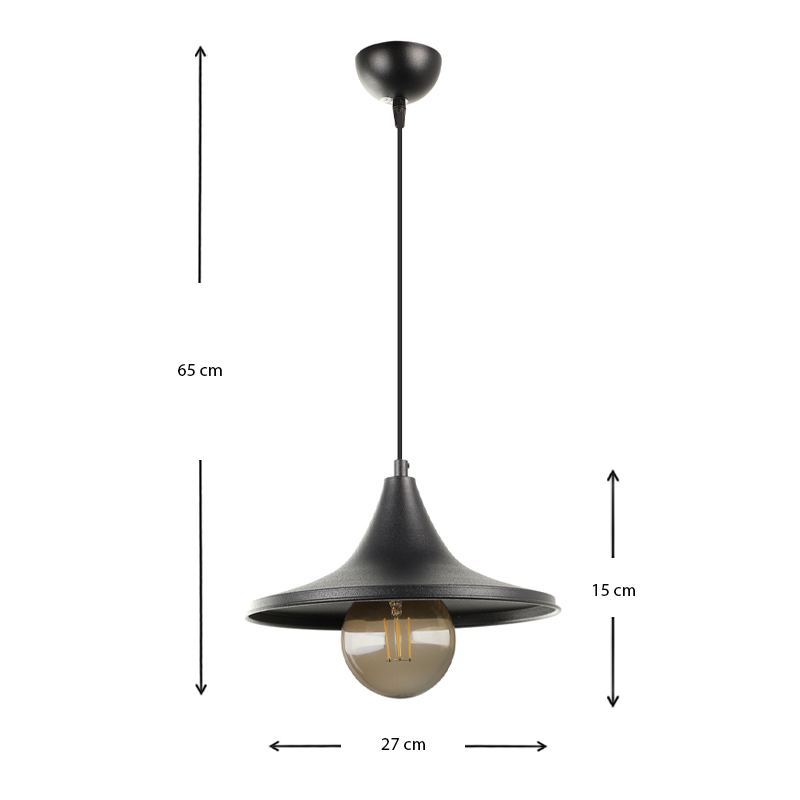 Φωτιστικό οροφής Silia Megapap E27 μεταλλικό μονόφωτο χρώμα μαύρο 27x27x65εκ.