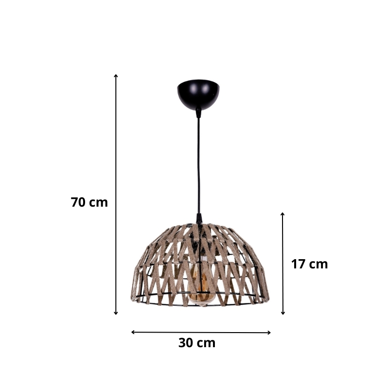 Φωτιστικό οροφής Simoza Megapap E27 μεταλλικό – σχοινί μονόφωτο χρώμα φυσικό Ø30×70εκ.