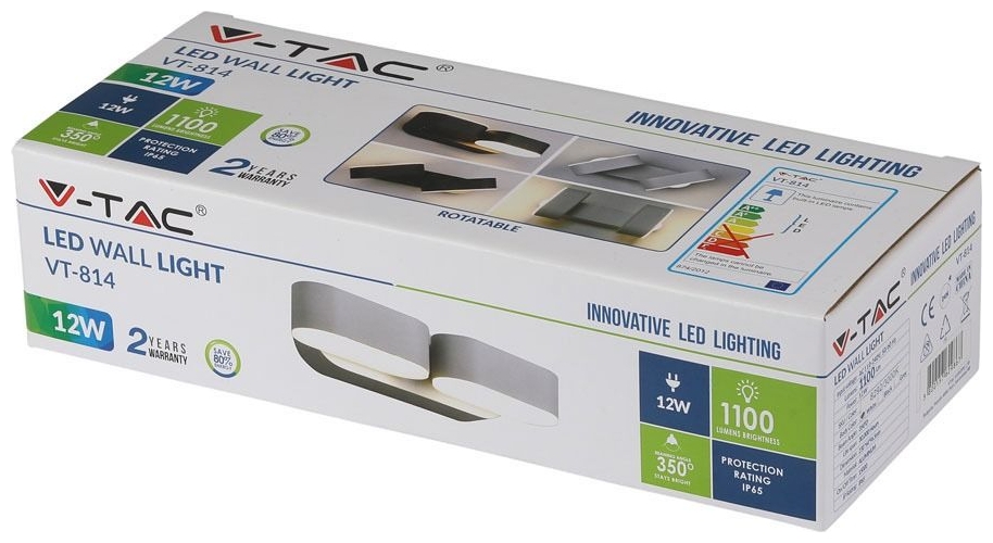 Φωτιστικό Τοίχου Διπλό Απλίκα V-TAC Κινητή Λευκή 12W IP65 Θερμό Λευκό 8292 Φωτιστικό Τοίχου Διπλό Απλίκα ...
