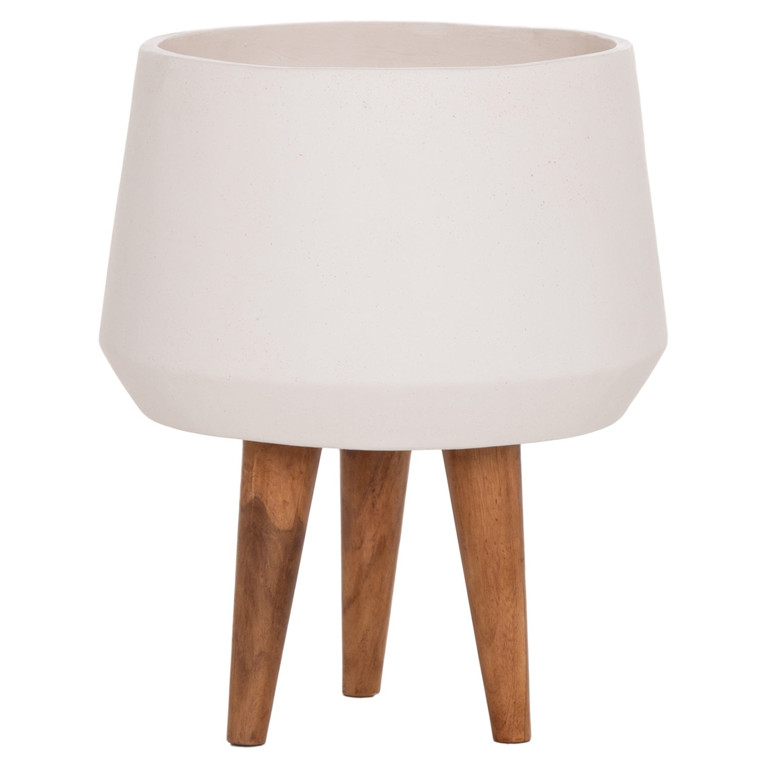 Η φαρδιά και ρηχή γλάστρα εσωτερικού χώρου (κασπό) QUAN είναι κατασκευασμένη από Fiber Cement σε ΛΕΥΚΟ χρώμα. Το ιδιαίτερο χαρακτηριστικό της είναι ότι συνοδεύεται και τοποθετείται σε μια ψηλή σχετικά τρίποδη βάση από ξύλο teak. Κατά την χρήση της συνιστάται η τοποθέτηση εσωτερικού δοχείου για την σωστή διατήρηση της γλάστρας.