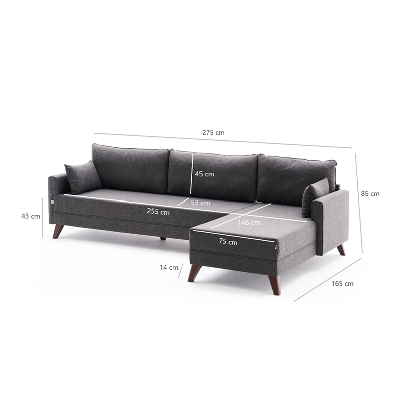 Γωνιακός καναπές Bella Megapap δεξιά γωνία υφασμάτινος χρώμα ανθρακί 275x165x85εκ.
