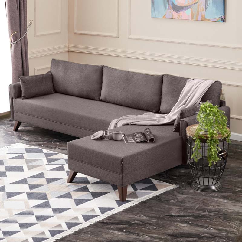 Γωνιακός καναπές Bella Megapap δεξιά γωνία υφασμάτινος χρώμα καφέ 275x165x85εκ.