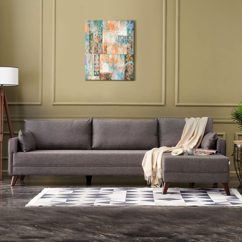 • Φέρει πόδια από πολυπροπυλένιο, ειδικά σχεδιασμένο για καναπέδες, με ξύλινη εμφάνιση σε καρυδί χρώμα.