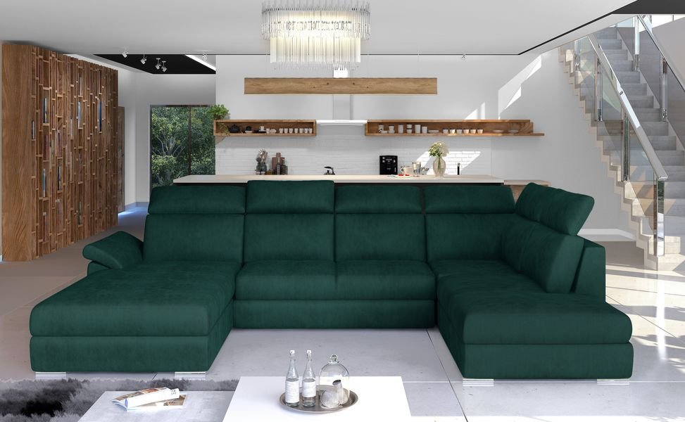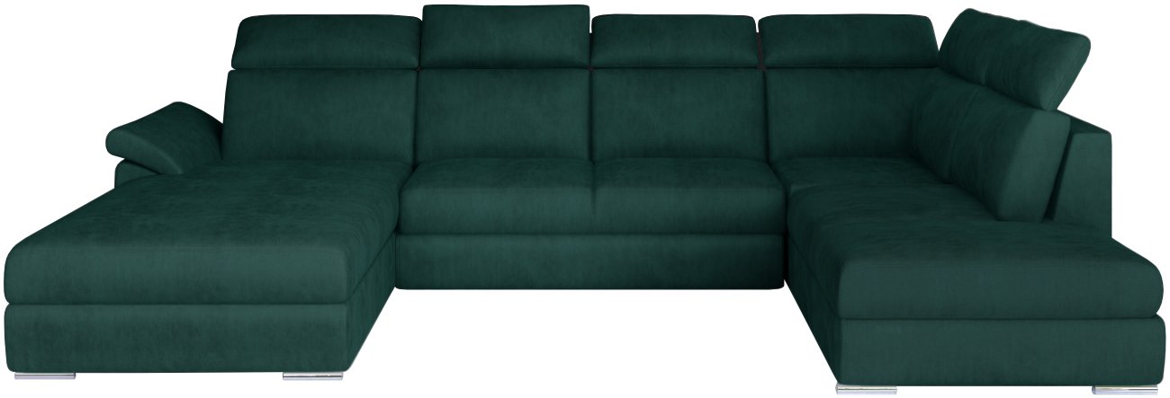 Γωνιακός καναπές Evans, σχήματος “π”, σχεδιασμένος ειδικά για όσους αναζητούν ευρύχωρες, κομψές και λειτουργικές λύσεις για το καθιστικό τους. Χάρη στις κατάλληλα διαμορφωμένες, ψηλές πλάτες με έξι ρυθμιζόμενα προσκέφαλα, ο χρήστης μπορεί ελεύθερα να προσαρμόσει τον καναπέ στις δικές του προτιμήσεις.