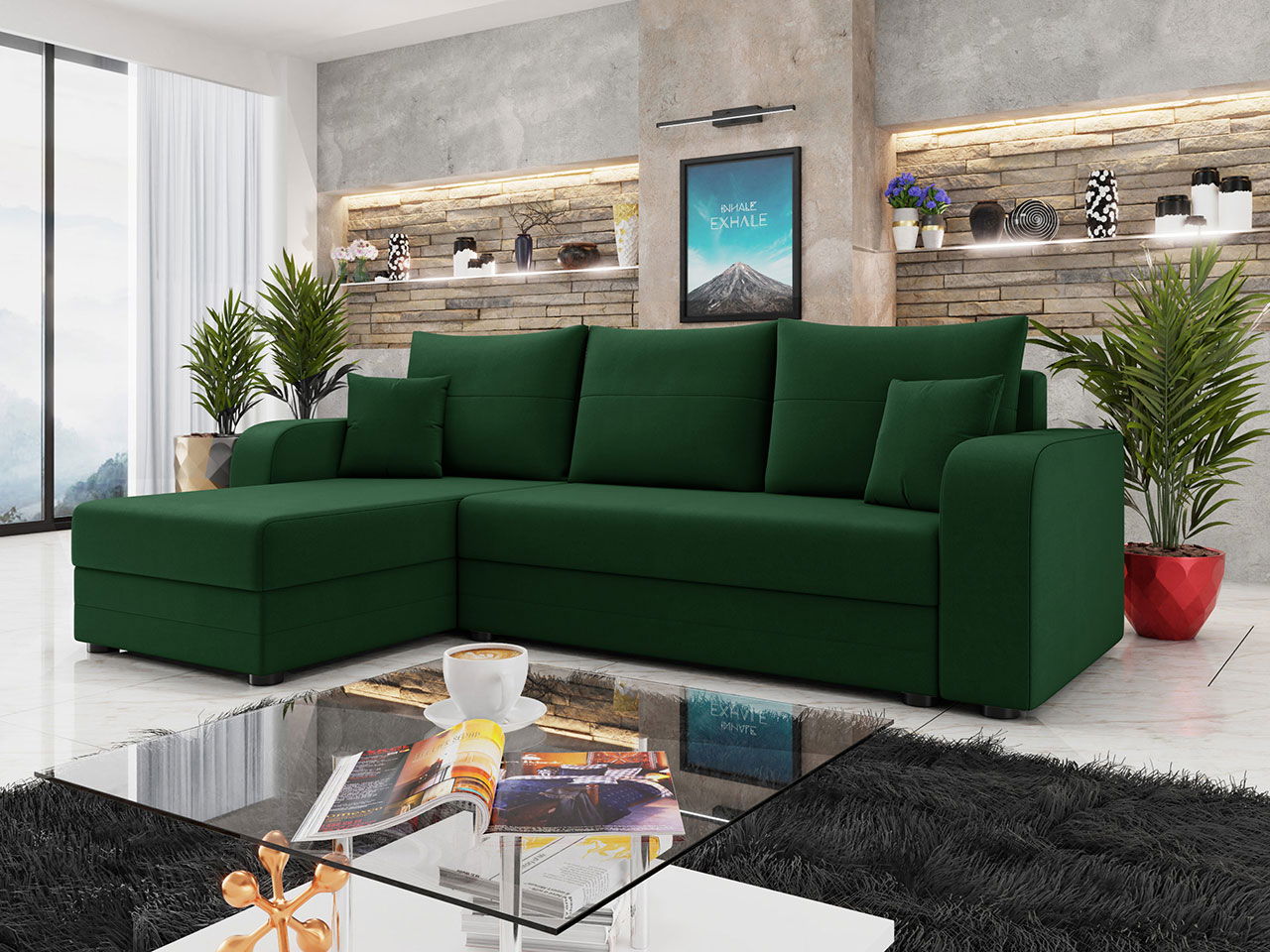 Γωνιακός καναπές Hewlet Bis, μοντέρνου σχεδιασμού με εντυπωσιακό μοτίβο! Τα ελατήρια wave και το στρώμα στερεού αφρού είναι υπεύθυνα για την άνεση κατά τη χρήση. Τα καλύμματα των μαξιλαριών διαθέτουν φερμουάρ που επιτρέπουν τον καθαρισμό τους. Ένα επιπλέον πλεονέκτημα του γωνιακού καναπέ Hewlet Bis είναι η μετατροπή του σε κρεβάτι. Όταν ξεδιπλώνεται, ο γωνιακός καναπές προσφέρει επιφάνεια κρεβατιού 200×130 ενώ στο κάτω μέρος υπάρχει αποθηκευτικός χώρος που θα σας βολέψει στην τοποθέτηση σκεπασμάτων και μαξιλαριών.