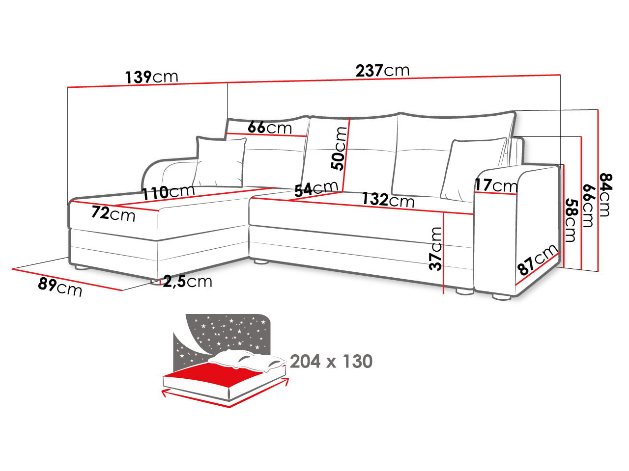– Ευρύχωρη επιφάνεια ύπνου