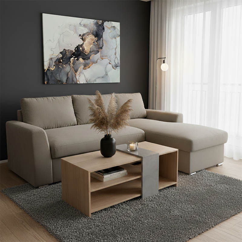 Γωνιακός καναπές-κρεβάτι αριστερή γωνία Belle pakoworld μπεζ 236x164x88εκ
