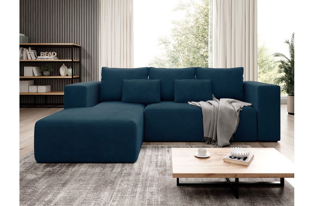 Γωνιακός καναπές - Κρεβάτι Striper με αποθηκευτικό χώρο, 255x161x91cm, Μπλε - Αριστερή Γωνία PL1356 Γωνιακός καναπές – Κρεβά...