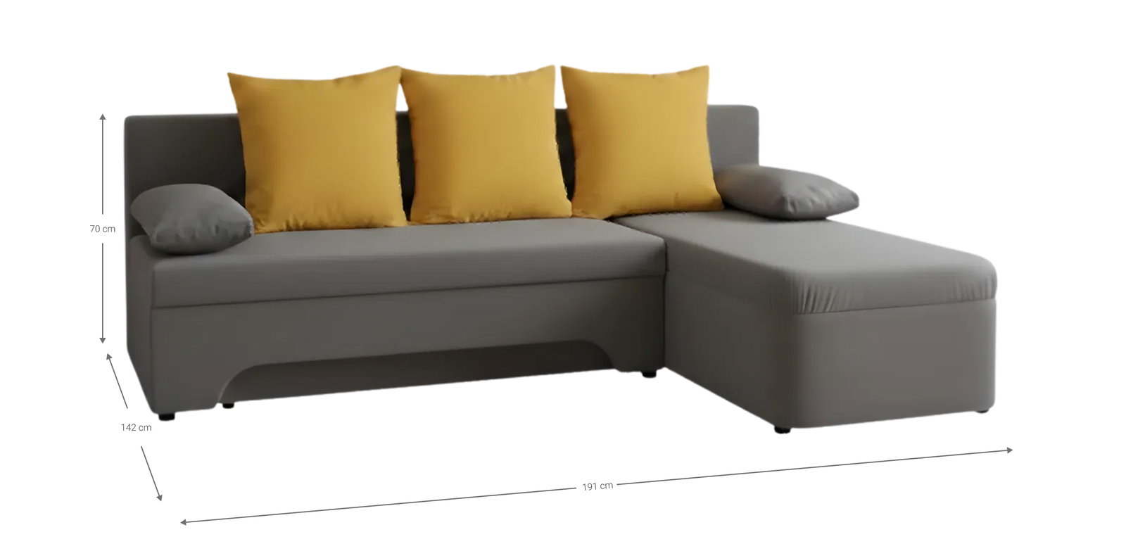 Σαλόνι γωνία Lamor, λιτού και πρακτικού σχεδιασμού, σε όμορφους χρωματισμούς.