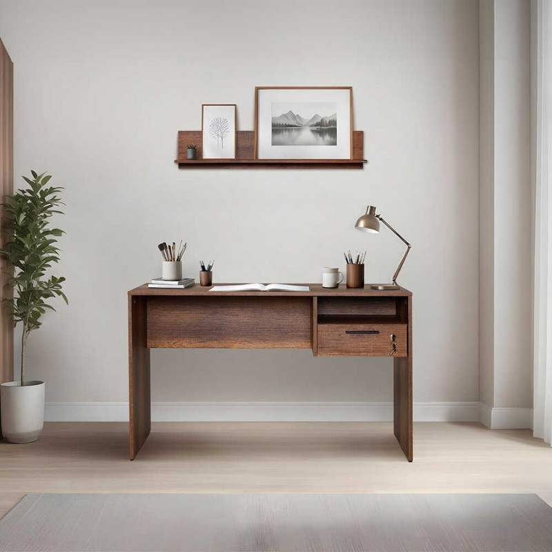Γραφείο εργασίας με κλειδαριά Concept Megapap από μελαμίνη σε χρώμα καρυδί 120x60x75εκ.