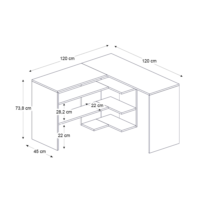 Γραφείο εργασίας Stylo Megapap από μελαμίνη χρώμα sapphire oak – ανθρακί 120x120x73,8εκ.