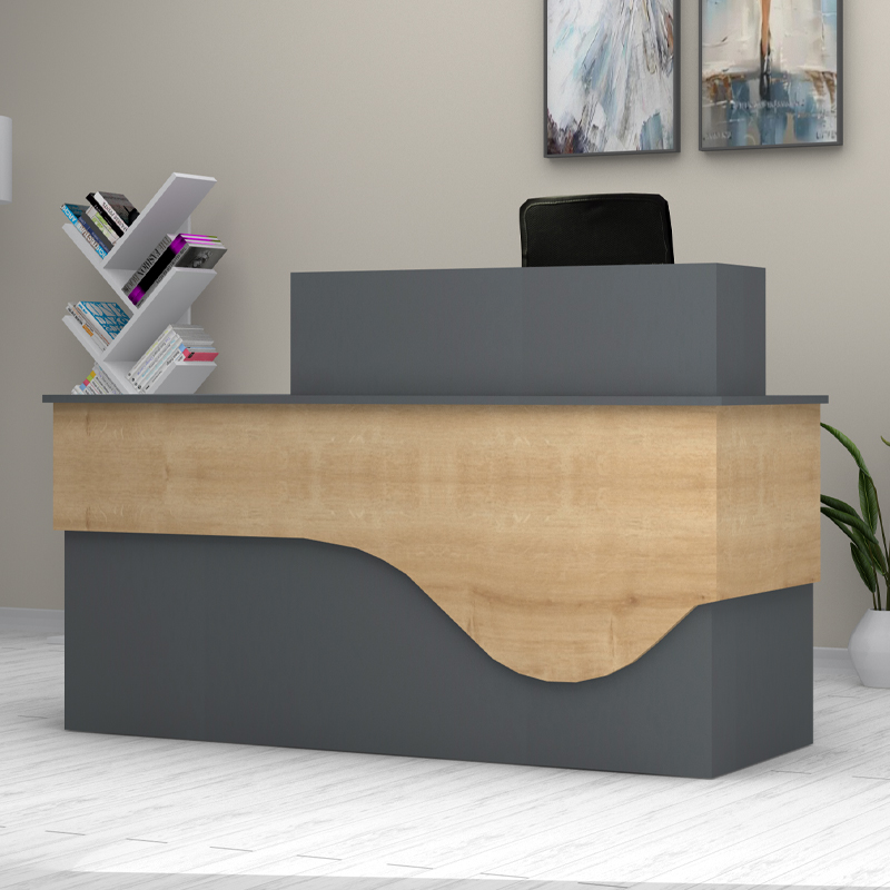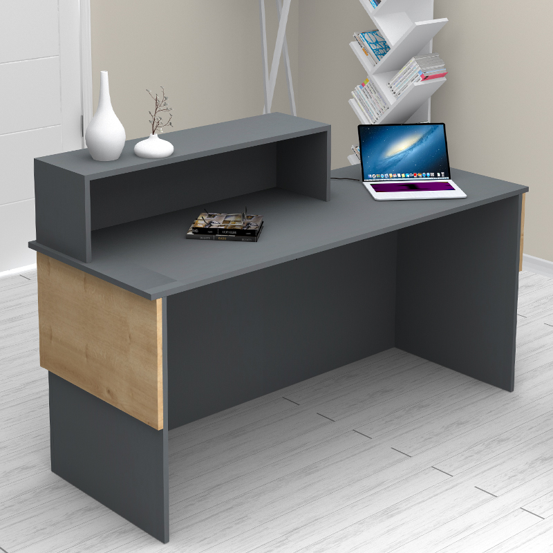 Γραφείο υποδοχής – reception Dustin Megapap χρώμα ανθρακί – φυσικό οξιάς 160x60x101,8εκ.