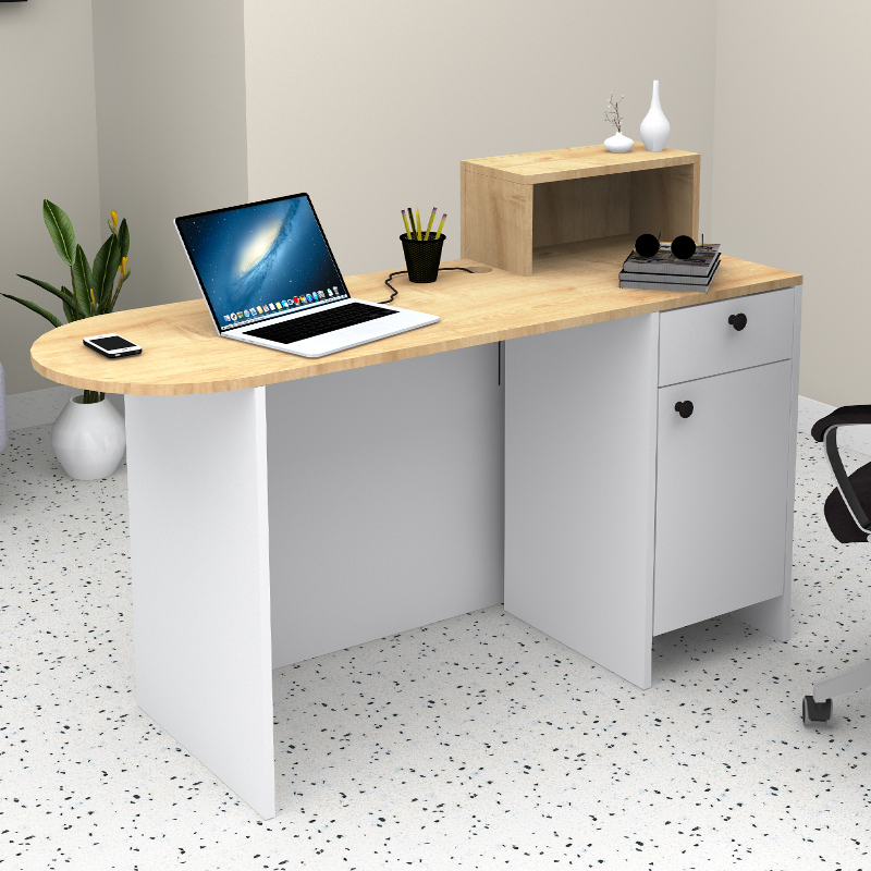Γραφείο υποδοχής – reception Rezio Megapap χρώμα λευκό – φυσικό οξιάς 140x50x101,8εκ.