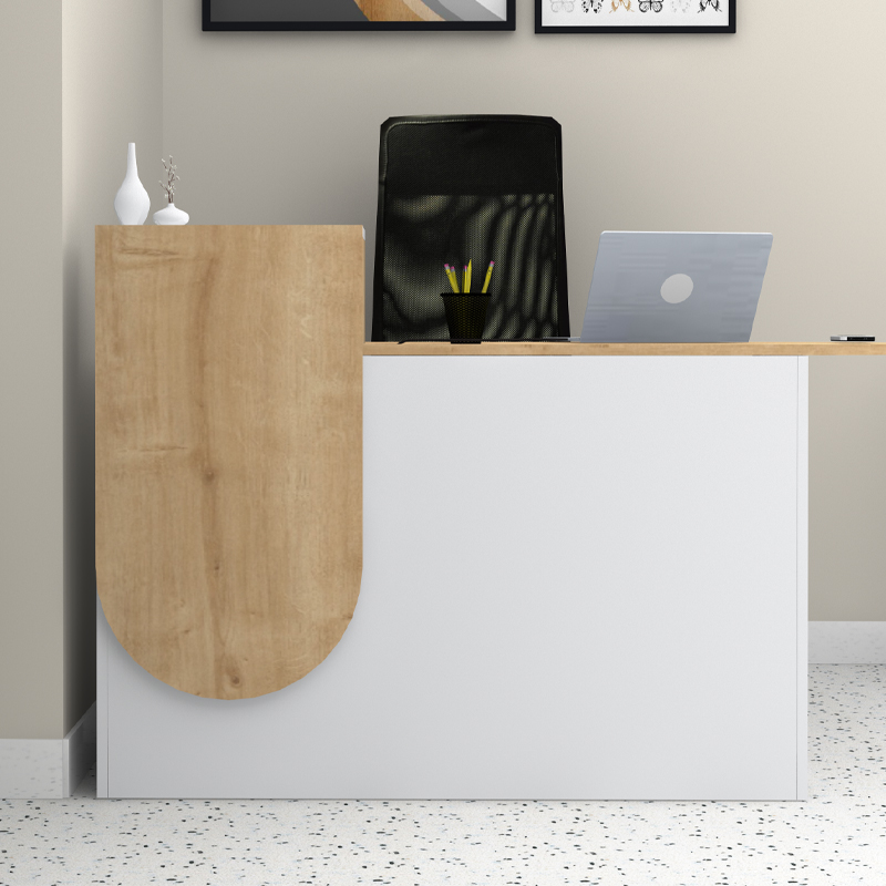 Γραφείο υποδοχής - reception Rezio Megapap χρώμα λευκό - φυσικό οξιάς 140x50x101,8εκ. Γραφείο υποδοχής – recep...