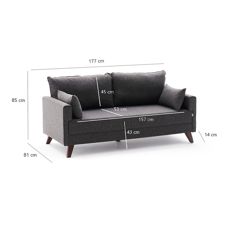 Καναπές Bella Megapap διθέσιος υφασμάτινος χρώμα ανθρακί 177x81x85εκ.
