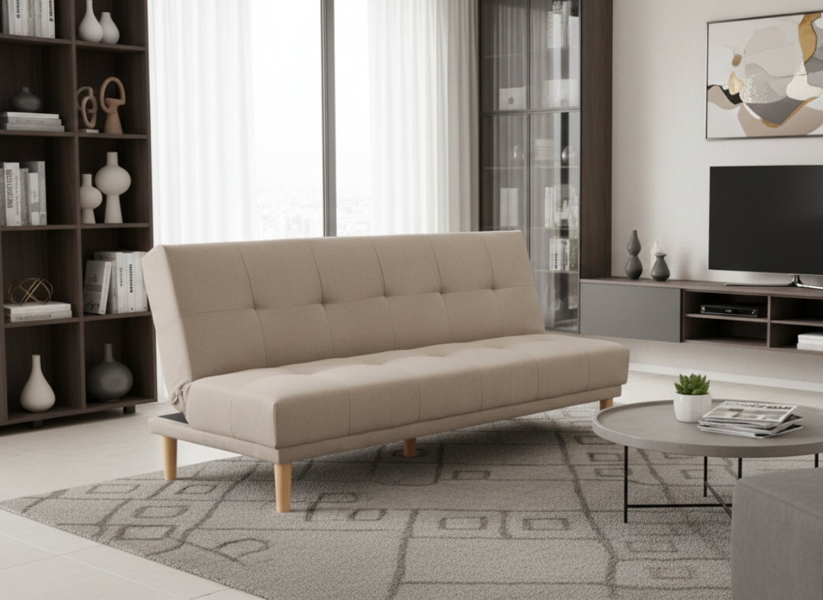 Καναπές – κρεβάτι Cozy, μοντέρνου σχεδιασμού με συμμετρικές λεπτομέρειες υφάσματος που προσφέρουν στυλ, αναπαυτικό κάθισμα, μηχανισμό εύκολης μετατροπής σε κρεβάτι και πρακτικές διαστάσεις που τον καθιστούν ιδανική επιλογή για κάθε χώρο.