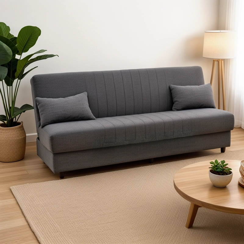 • Φέρει εύχρηστο μηχανισμό που με μία μόνο κίνηση ανασηκώνεται, μετατρέποντας τον καναπέ σε κρεβάτι και το αντίστροφο.