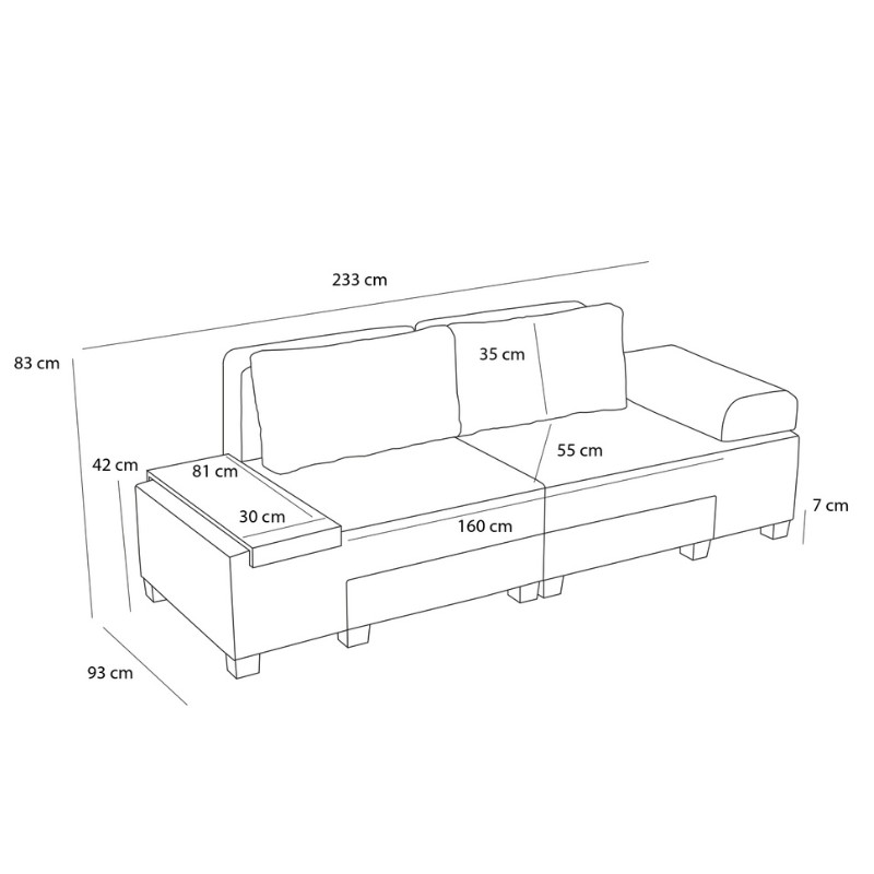 Καναπές – κρεβάτι πολυμορφικός Perenna Megapap τριθέσιος υφασμάτινος χρώμα κρεμ 233x93x83εκ.