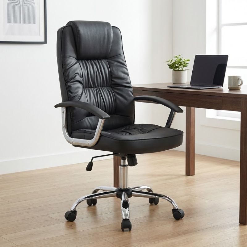 Καρέκλα γραφείου διευθυντική Arial Megapap από τεχνόδερμα χρώμα μαύρο 62x63x112/122εκ.
