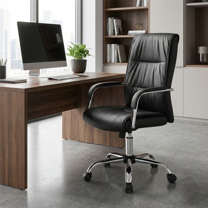 Καρέκλα γραφείου διευθυντική Matteo Megapap από τεχνόδερμα χρώμα μαύρο 60x66x105/115εκ.