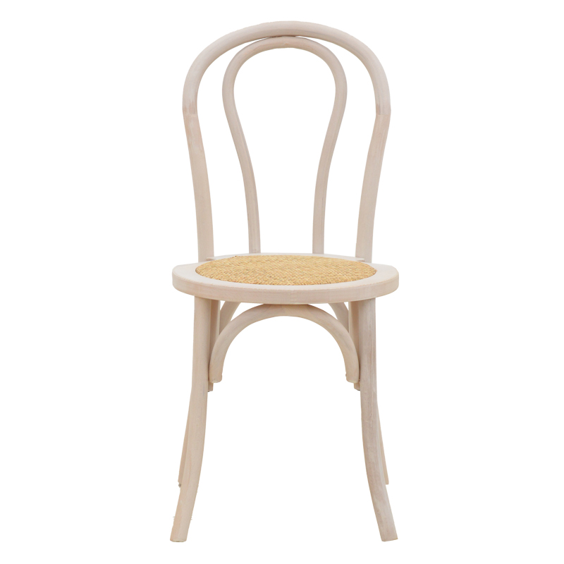 Καρέκλα στοιβαζόμενη Βιεννης Azhel pakoworld white wash ξύλο οξιάς-έδρα φυσικό rattan 41x50x89εκ