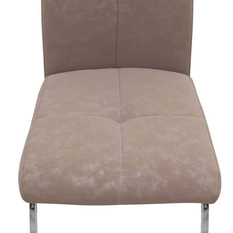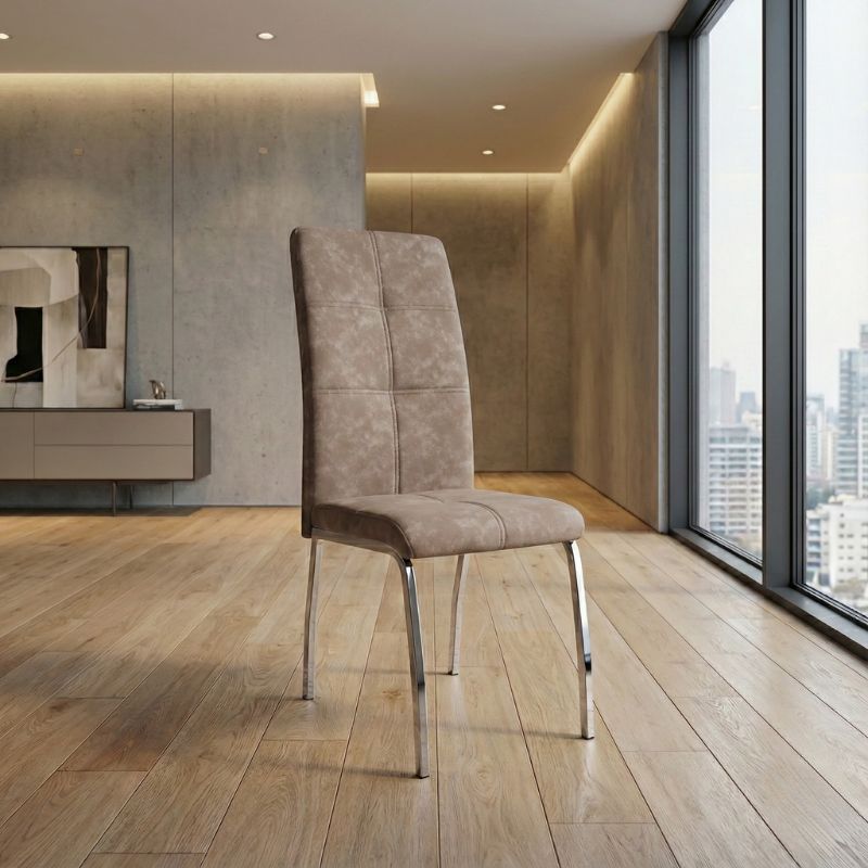 Η καρέκλα Alma διαθέτει κάθισμα από τεχνόδερμα PU σε μπεζ τόνο και μεταλλικά πόδια χρωμίου, προσφέροντας αντοχή και πρακτικότητα στην καθημερινή χρήση. Ο λιτός, μοντέρνος σχεδιασμός της την κάνει κατάλληλη για κάθε τύπο τραπεζαρίας, οικιακής ή επαγγελματικής, προσφέροντας μια διακριτική αλλά κομψή παρουσία στον χώρο.