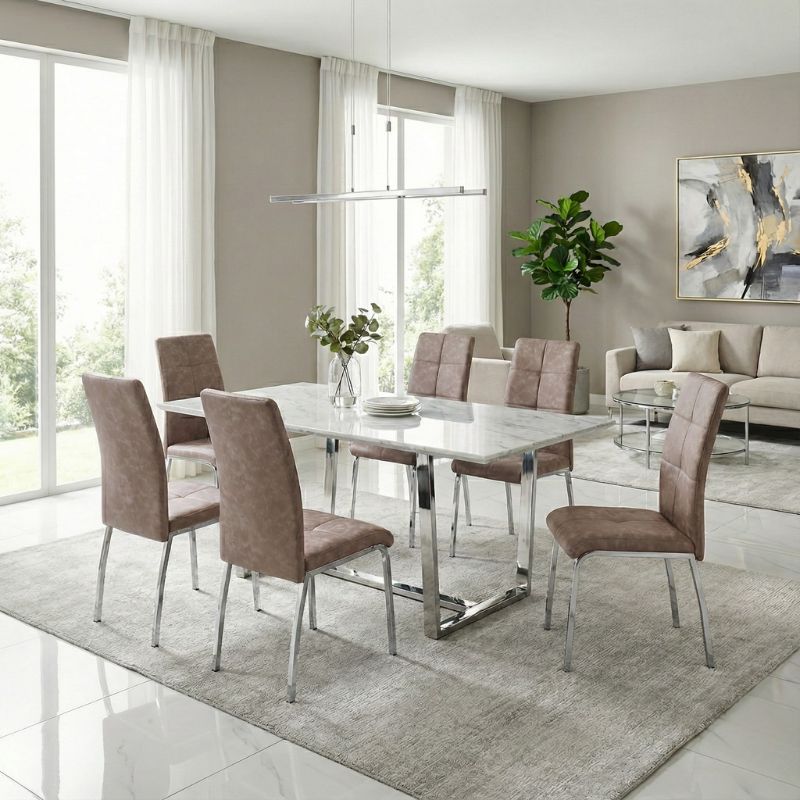 Καρέκλα τραπεζαρίας Alma Megapap μπεζ PU – μεταλλικό πόδι χρωμίου 42x53x97εκ.