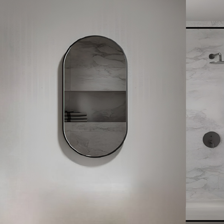 Οβάλ Καθρέφτης CLEIO 45cm με Μαύρο Πλαίσιο Το διακριτικό μαύρο πλαίσιο του δίνει μια εκλεπτυσμένη εμφάνιση που ταιριάζει απόλυτα σε σύγχρονους και minimal εσωτερικούς χώρους. Ιδανικός για το μπάνιο, το υπνοδωμάτιο, ή τον διάδρομο, αυτός ο καθρέφτης δημιουργεί την ψευδαίσθηση ενός μεγαλύτερου και πιο φωτεινού χώρου. Κατασκευασμένος από ανθεκτικά υλικά για μακροχρόνια χρήση, ενώ το λεπτό πλαίσιο προσθέτει στιλ χωρίς να περιορίζει την επιφάνεια του καθρέφτη. Χρώμα Πλαισίου: Μαύρο Υλικά: Ανθεκτικό μεταλλικό πλαίσιο, γυαλί υψηλής ποιότητας Ιδανικό για: Μπάνια, Υπνοδωμάτια, Διαδρόμους
