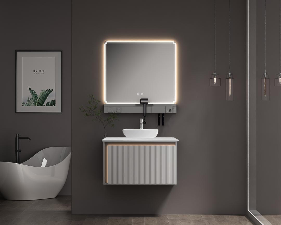 Καθρέφτης led 80cm με αντιθαμβωτική λειτουργία, τρείς επιλογές θερμοκρασίας χρώματος και αυξομείωση έντασης (dimmer). Διαθέτει στο κάτω μέρος υποδοχή για ρεύμα και βάσεις στήριξης για οδοντόβουρτσες, πιστολάκι και είδη προσωπικής υγιεινής Εύκολη τοποθέτηση Ετοιμοπαράδοτα προϊόντα Διατίθεται έτοιμο συναρμολογημένο.