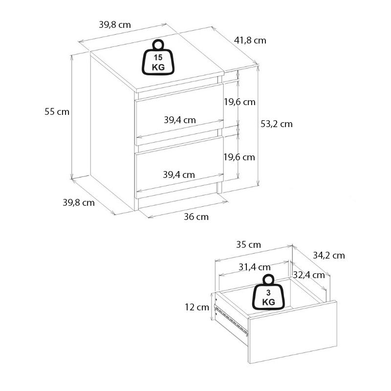 Κομοδίνο Breve Megapap χρώμα καρυδί 39,8×41,8×55εκ.