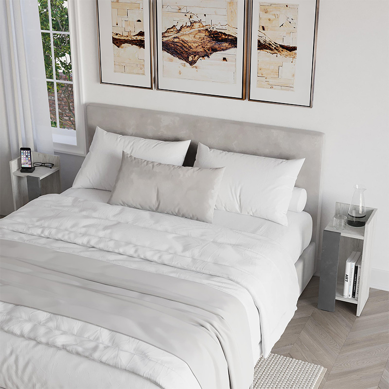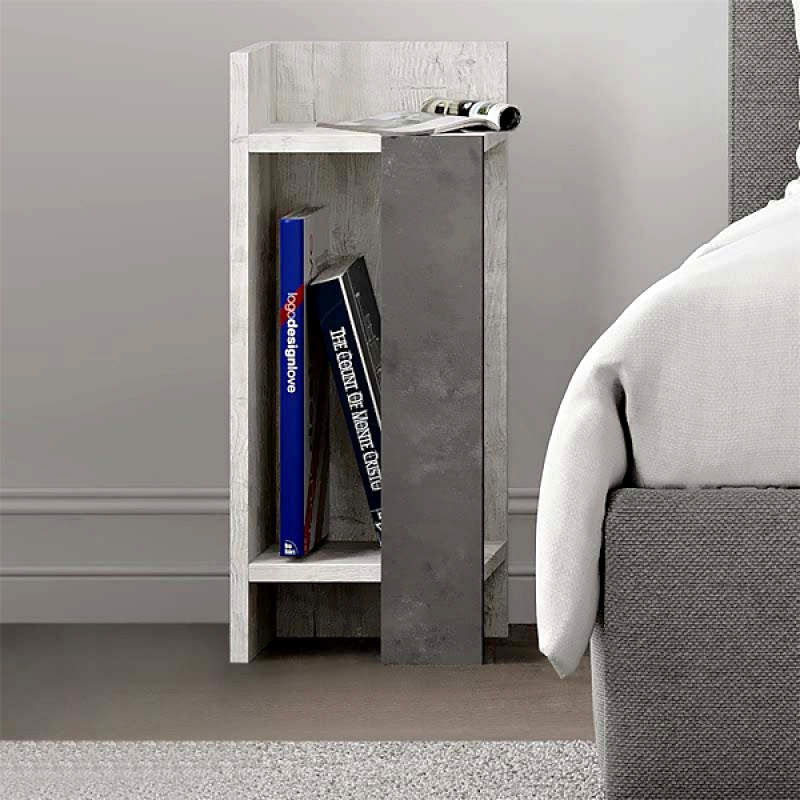Κομοδίνο μελαμίνης Elos Megapap σετ 2 τεμαχίων χρώμα λευκό αντικέ – γκρι ρετρό 25x27x60εκ.