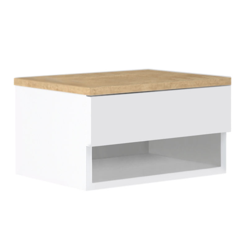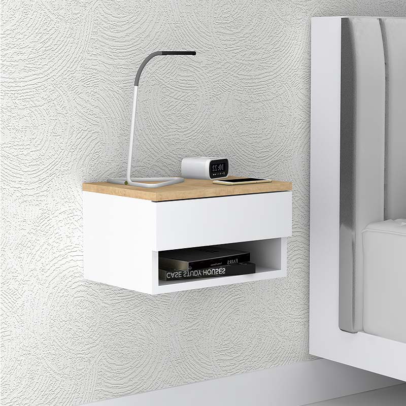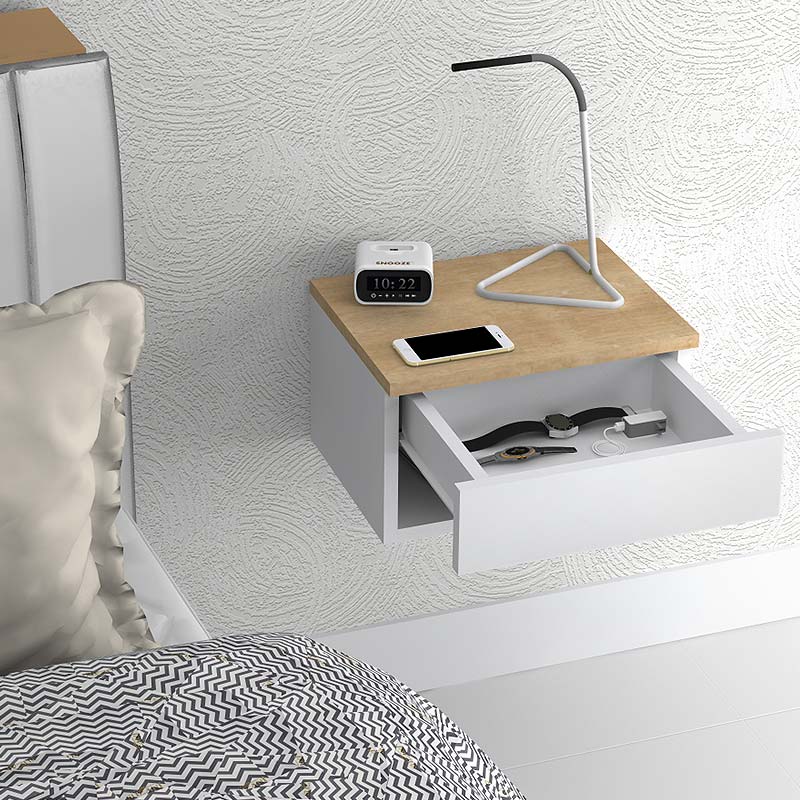 Κομοδίνο επιτοίχιο μελαμίνης Mary Megapap χρώμα φυσικό οξιάς – λευκό 40x30x23εκ.