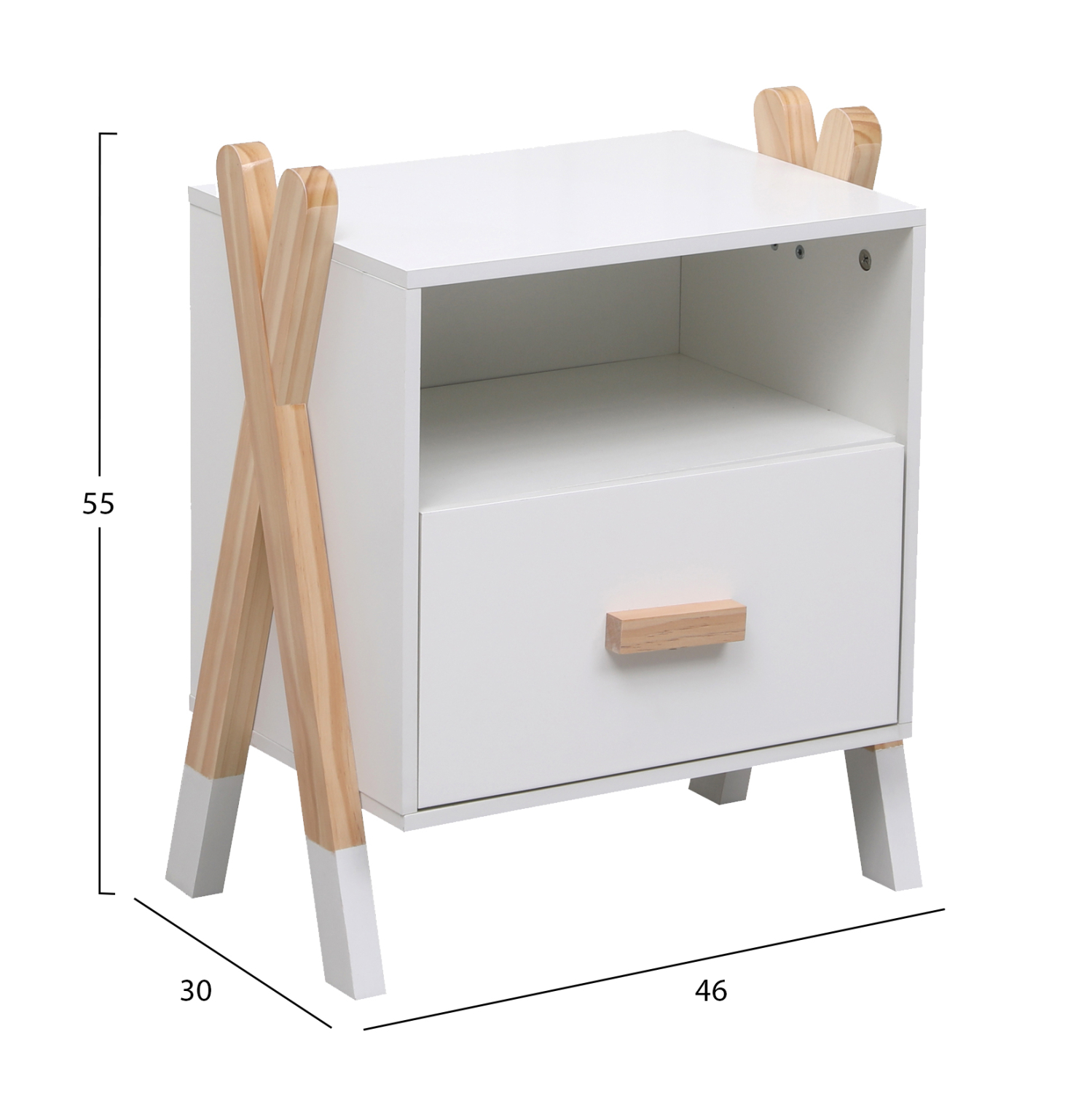 Σας παρουσιάζουμε το καινούργιο παιδικό (και όχι μόνο) κομοδίνο PASCHAL σε ΛΕΥΚΟ χρώμα. Είναι πολύ βολικό σε διαστάσεις και διαθέτει ένα συρταράκι και έναν ανοιχτό χώρο τοποθέτησης αντικειμένων. Στηρίζεται σε δύο ξύλινα χιαστί πόδια σε ΦΥΣΙΚΟ χρώμα ξύλου στις δύο πλευρές. Ένα όμορφο και χρήσιμο έπιπλο για κάθε χώρο. Είναι βαμμένο με αβλαβές βερνίκι με βάση το νερό και μη τοξικό, ιδανικό για παιδιά.