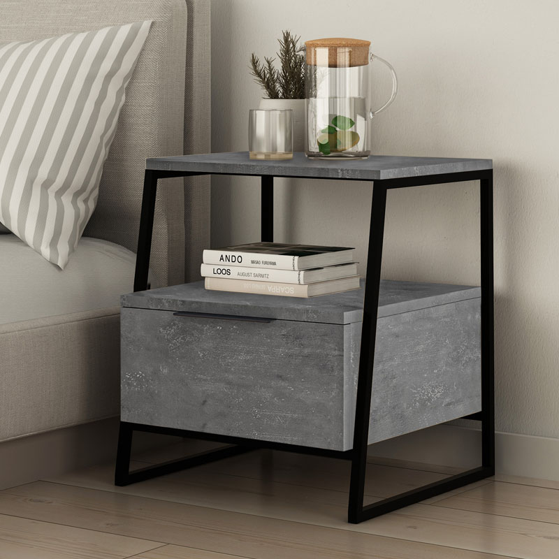 Κομοδίνο μελαμίνης Pal Megapap χρώμα γκρι ρετρό 45x40x50εκ.