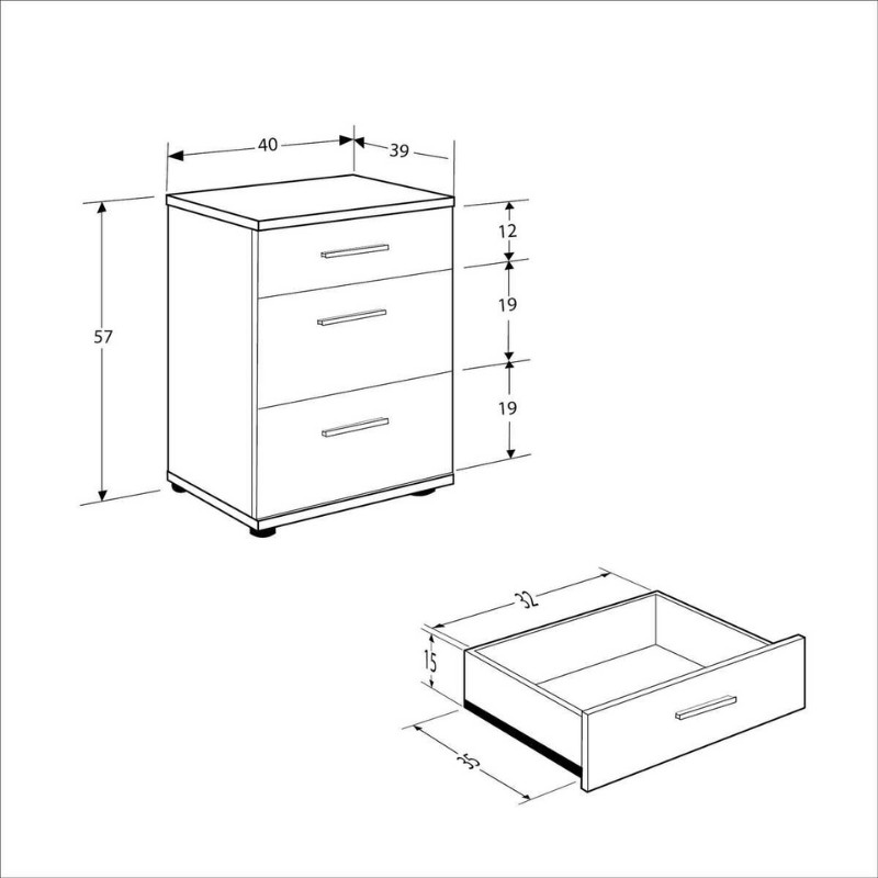 Κομοδίνο – συρταριέρα γραφείου Trendline Megapap από μελαμίνη σε χρώμα λευκό 40x39x57εκ.