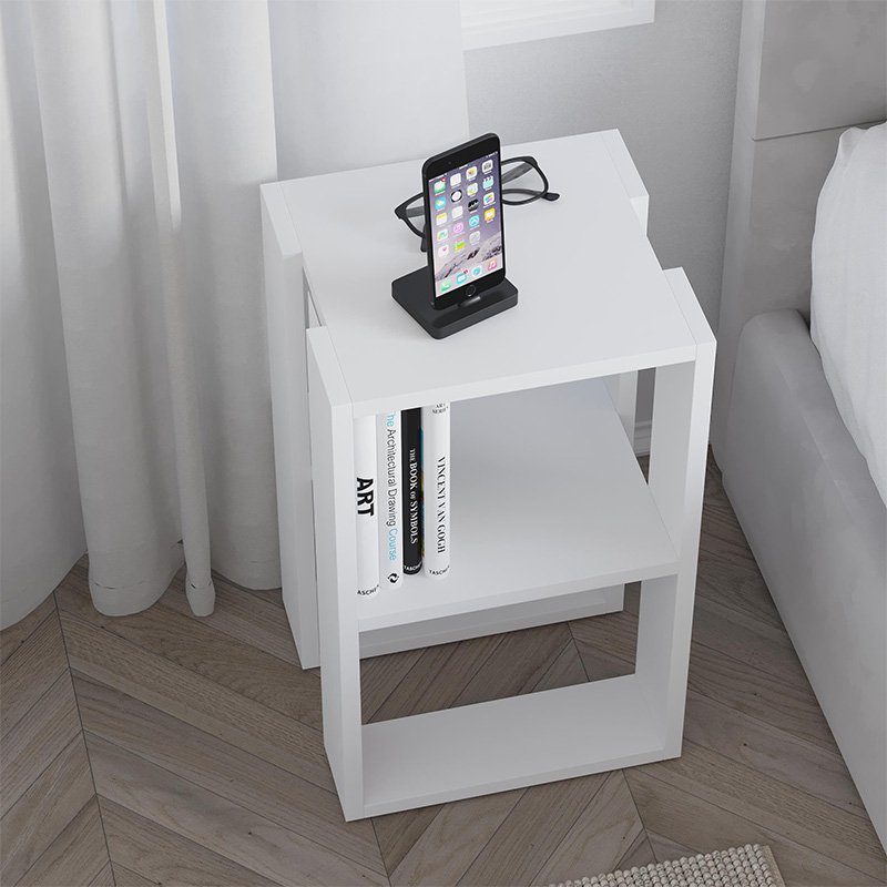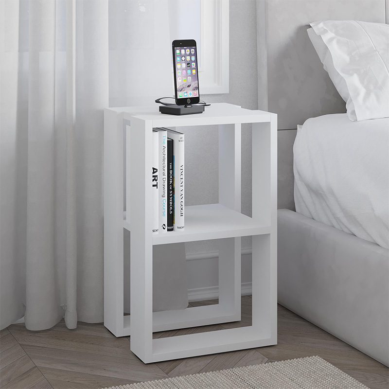 Κομοδίνο – τραπεζάκι βοηθητικό Lonie Megapap από μελαμίνη χρώμα λευκό 34x30x55εκ.
