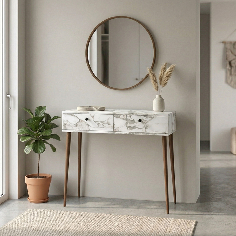 Κονσόλα Alis Megapap χρώμα λευκό εφέ μαρμάρου 110x29x88εκ.