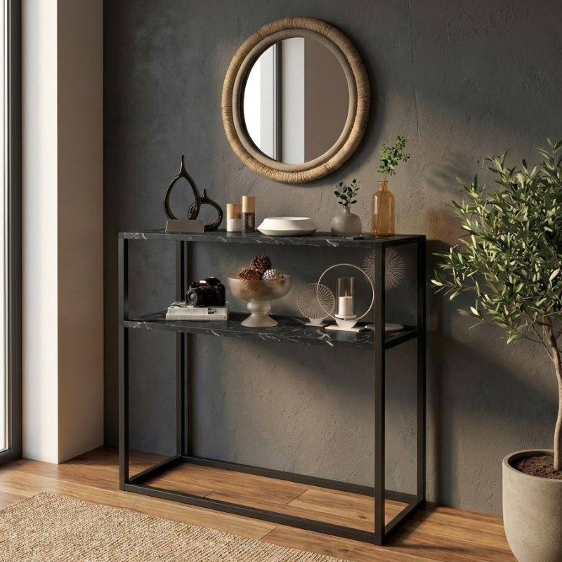 Κονσόλα Castel Megapap μεταλλική – μελαμίνης χρώμα μαύρο εφέ μαρμάρου 90×33,5×90εκ.