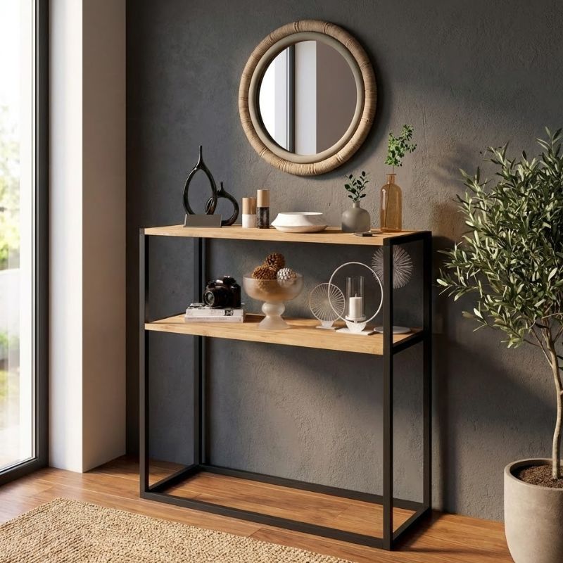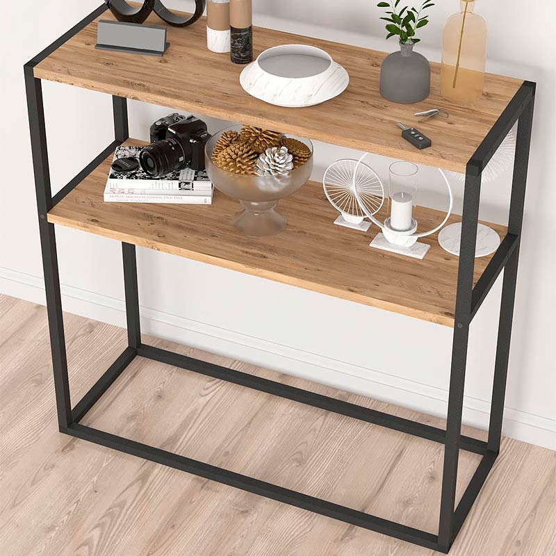 Κονσόλα Castel Megapap μεταλλική – μελαμίνης χρώμα μαύρο – pine oak 90×33,5×90εκ.