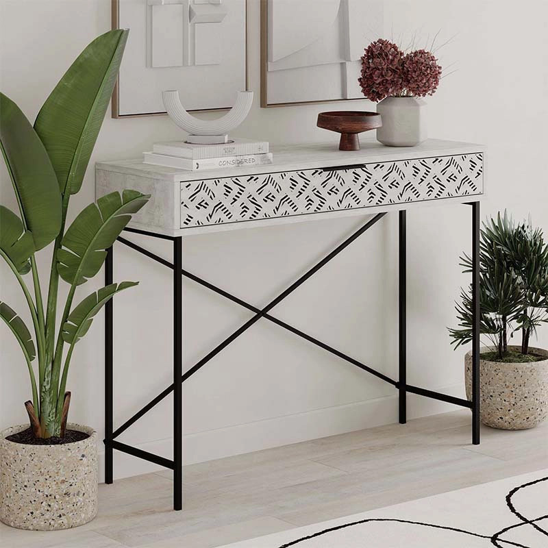 Κονσόλα Heaton Megapap μεταλλική – μελαμίνης χρώμα λευκό αντικέ 110×35,6×90εκ.